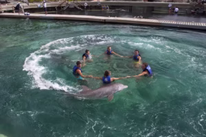 • Enjoy 30 or 45 minutes of guided dolphin interaction in crystal-clear waters